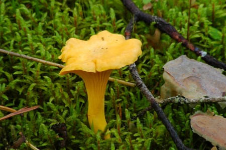Cantharelus ciberus, rebozuelo o rossinyol en catalán, esquisita. Resulta impresionante poniendo un poco de mantequilla en la sartén y friéndolas a fuego lento durante tres o cuatro minutos, sin pasarse. Carne blanca por lo que hay que tener cuidado si está pasada y con gusanos, ya que estos no se ven por ser del mismo color.